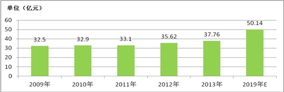 热熔胶在包装以及非刚性黏接领域将保持平稳增长,在汽车、胶带以及建筑行业将实现较高增长,预计2013-2019年,市场规模将从37.76亿美元增长到50.14亿美元,年复合增长率达到5%。